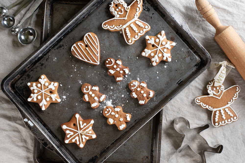 Roll out the dough on a baking sheet, lined with baking paper, to about half a cm thick. This can be done on a floured surface and moved across to a baking tray sheet if you would rather. Bake for 25 minutes until golden brown. While the gingerbread sheet is still hot, arrange your template pieces on the sheet of gingerbread and cut out the shapes with a biscuit cutter. Bake for a further 15 minutes to allow the crushed sweets to melt into the gingerbread biscuits. Allow to cool completely before trying to remove the cookie shapes from the gingerbread sheet. Give the cooling process about 2 hours.